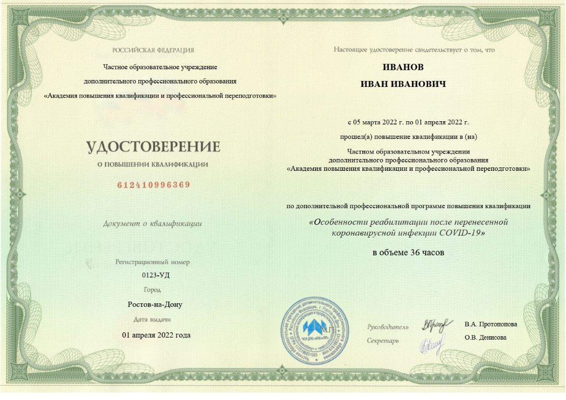 По завершении курса выдается удостоверение о повышении квалификации, которое может быть использовано при периодической аккредитации врача.
