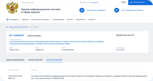 Мы представлены на всех государственных торговых площадках. Информацию об успешно исполненных контрактах Академии вы можете посмотреть на в Единой информацонной системе в сфере закупок в разделе «Реестры контактов»
