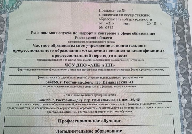 Лицензия на право осуществления образовательной деятельности по основным программам профессионального обучения