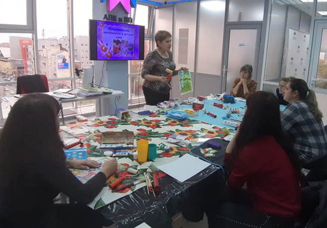 На очных занятиях по программе профессиональной переподготовки «Дошкольная педагогика. Воспитатель» будущие воспитатели дошкольных учреждений в процессе практических занятий готовятся к организации развивающей воспитательной среды в детских садах. Игровая деятельность является ведущей для детей дошкольного возраста, в процессе игры развивается память, внимание, мышление, воображение дошкольников, то есть основные познавательные процессы. Важнейшее значение имеет и творческое развитие детей. На практических занятиях наши слушатели осваивают педагогические технологии развития дошкольников в процессе занятий ИЗО и ДПИ.