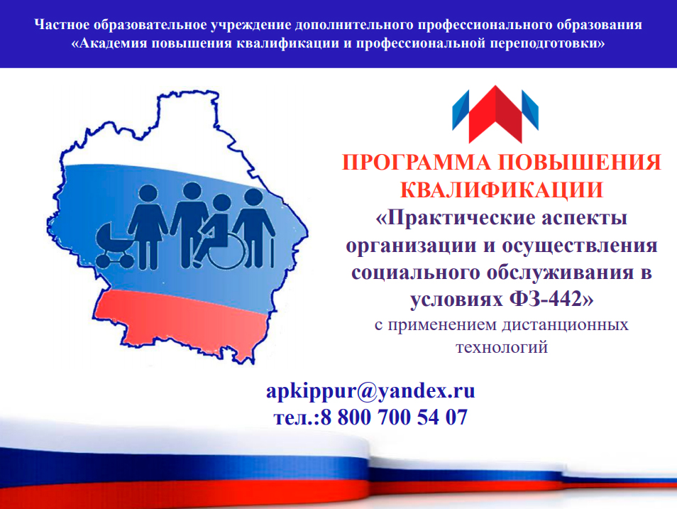 Удостоверение о повышении квалификации «Практические аспекты организации и осуществления социального обслуживания в условиях ФЗ-442» высылается Почтой России.