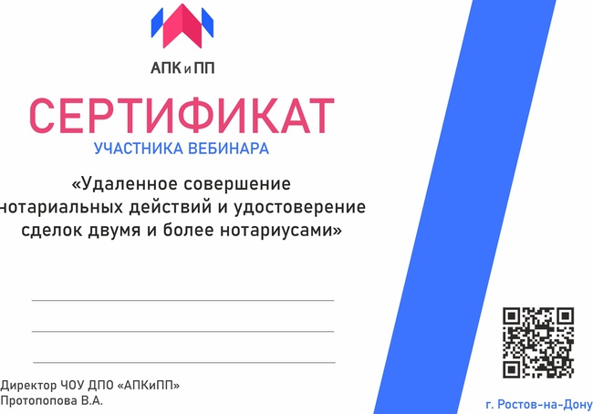 По результатам обучения выдается сертификат участника вебинара.