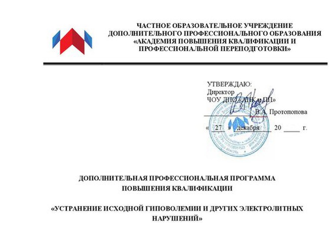 Приглашаем пройти обучение по данной программе НМО в нашей Академии: "Устранение исходной гиповолемии и других электролитных нарушений"